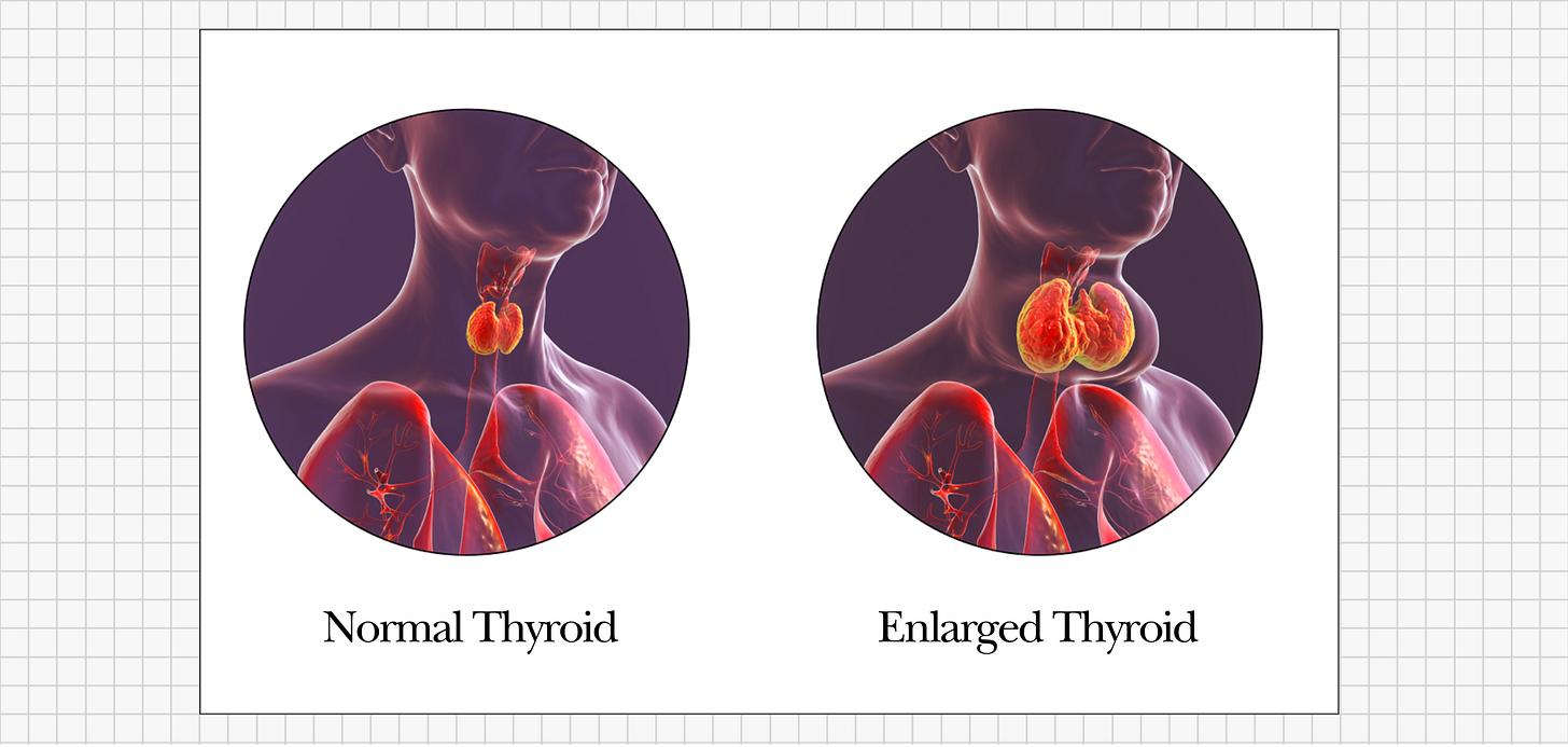 When iodine intake or absorption falls short, hormone production slows, and the thyroid works overtime to compensate. Over time, this deficiency can lead to a visible enlargement of the gland (known as a goiter) as it struggles to capture every bit of iodine it can find in order to keep up with hormone production.