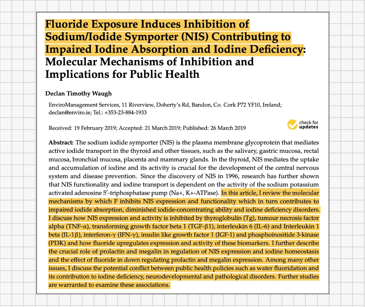 Modern research has reinforced these findings. The U.S. National Research Council (NRC), in a comprehensive 2006 report on fluoride toxicity, concluded that fluoride exposure can impair thyroid function - especially in people with inadequate iodine intake. The NRC also warned that children and pregnant women may be particularly susceptible to fluoride’s endocrine effects.