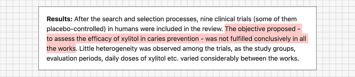 When you look instead at better-designed, longer-term studies - where overall sugar intake is controlled and xylitol is the main variable being manipulated - the apparent benefits become smaller, more inconsistent, and far less impressive than the marketing suggests.